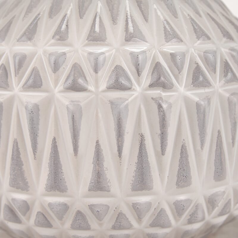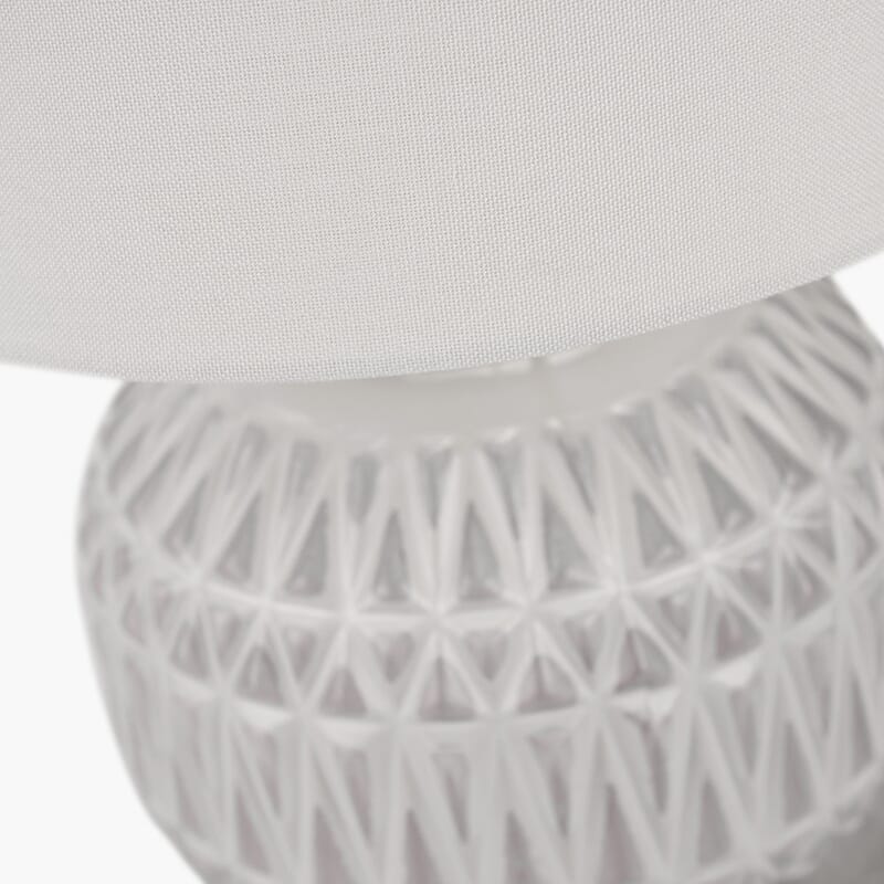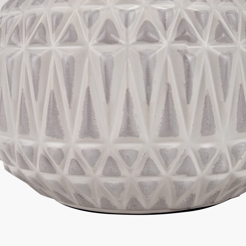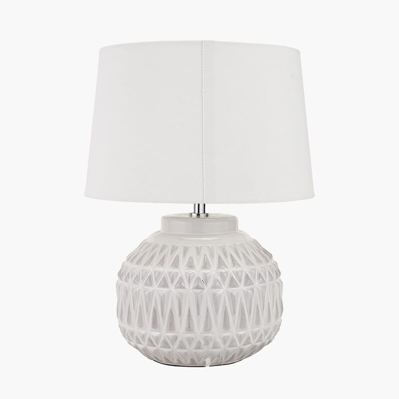 Denne perfekt formede keramiske lampen i varm hvit, med en stilig og iøynefallende aztekisk tekstur, vil være et fantastisk tilskudd til hjemmet ditt og tilføre en velkommen taktil følelse. Den imponerende basen er fullført med en selvforet hvit skjerm.
