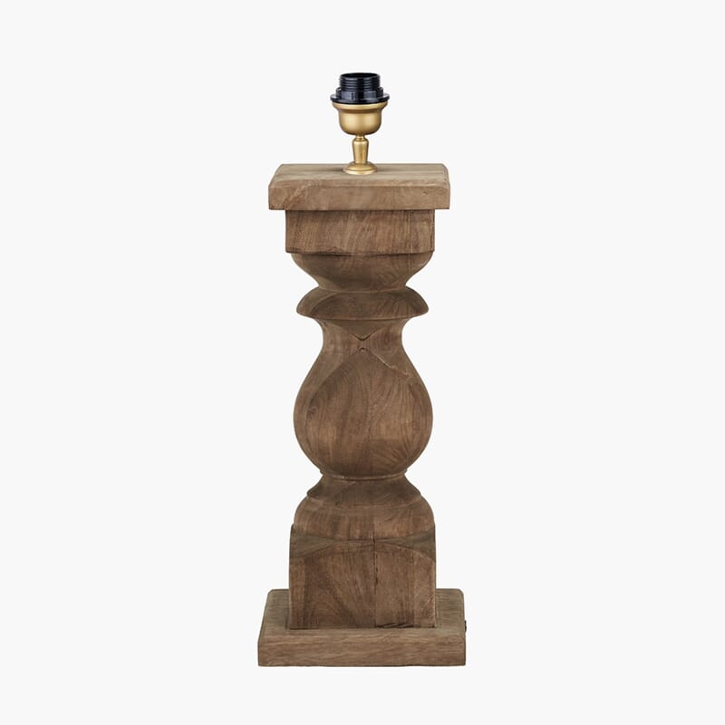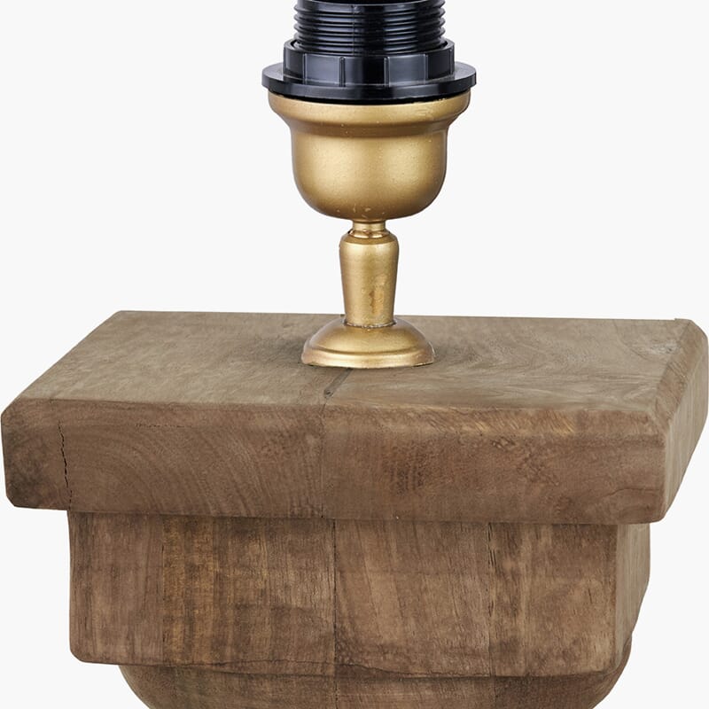 Håndlaget, rustikk bordlampebase i antikk brunvasket mango-tre. Legg til naturlig sjarm med en skjerm i lin eller kunstig bomull. Anbefalt skjermstørrelse: 45 cm