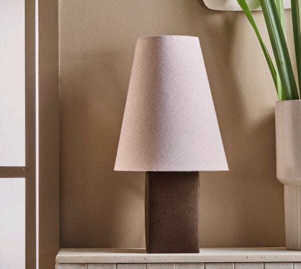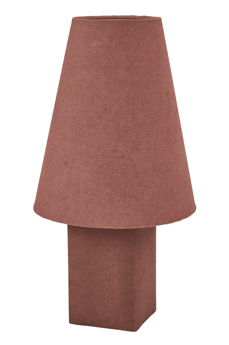 Høyreist bordlampe i lin. Se også gulvlampe i samme serien.