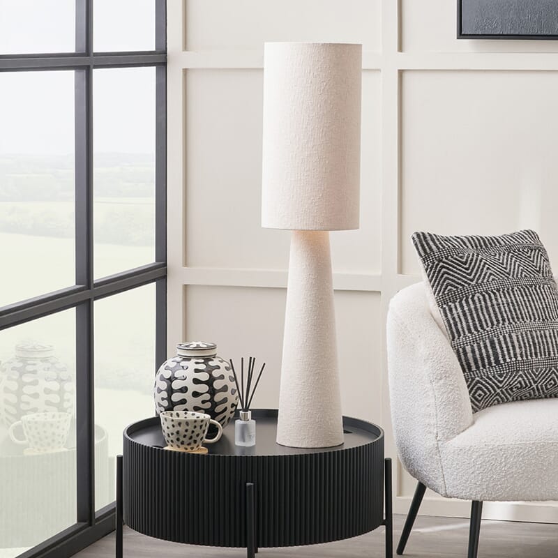 Håndlaget i India, har Mirissa bordlampen både base og skjerm i naturlig teksturert stoff, som utstråler diskret eleganse og tidløs stil. Den varme, omgivende gløden skaper en koselig og innbydende atmosfære, og gjør den til et perfekt tillegg i både skandinaviske og nøytrale interiører