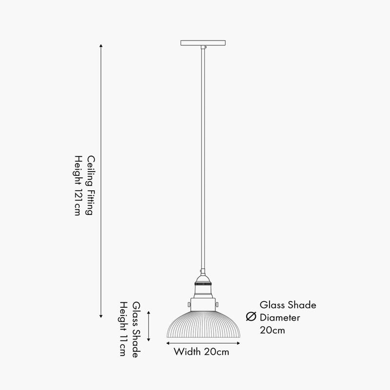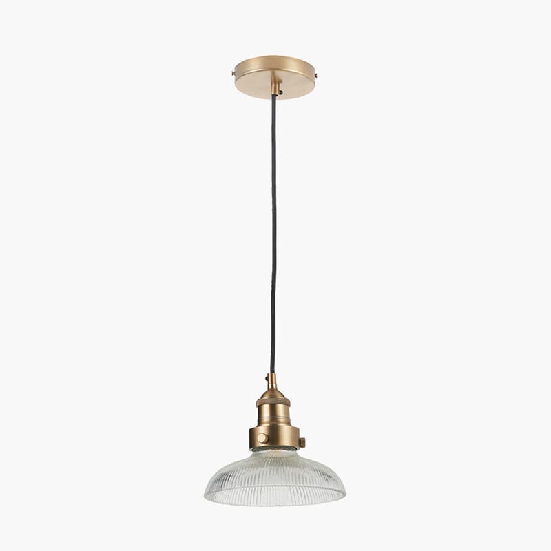Denne pendellampen i ribbet glass tilfører et unikt, industrielt preg til rommet. Med sin antikk bronsekrone er den den perfekte kombinasjonen av moderne eleganse og tidløs design.