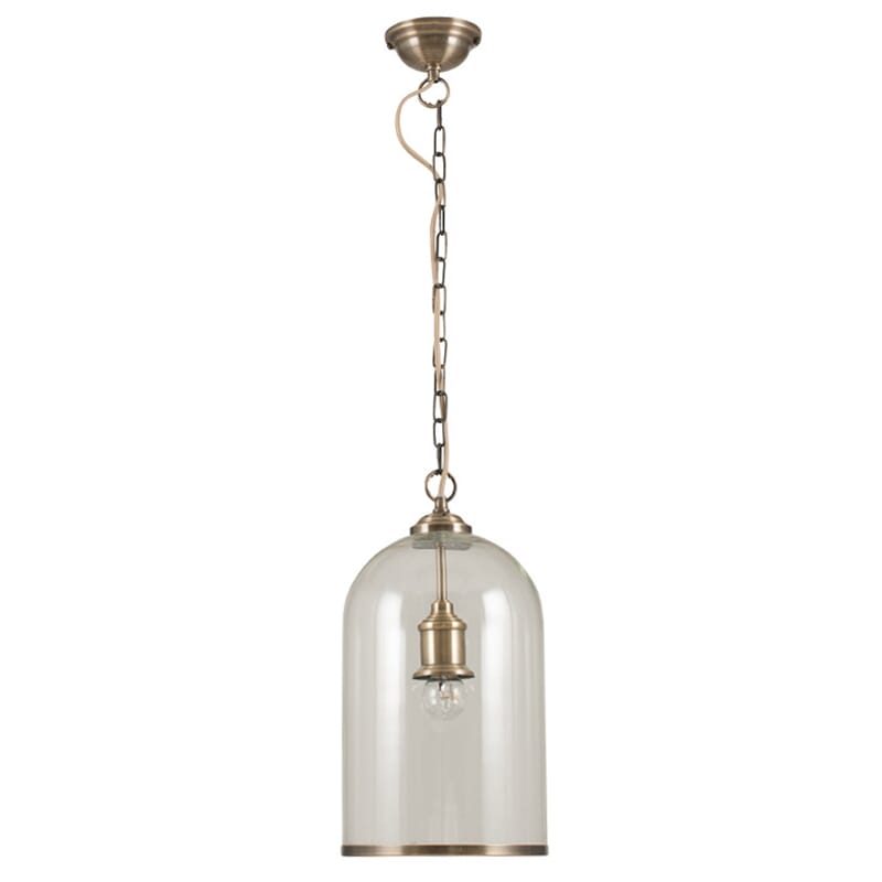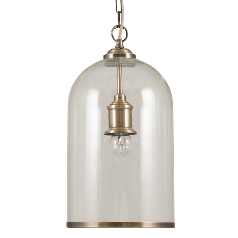 CLOCHE CLEAR GLASS AND ANTIQUE BRASS RIMMED PENDANT