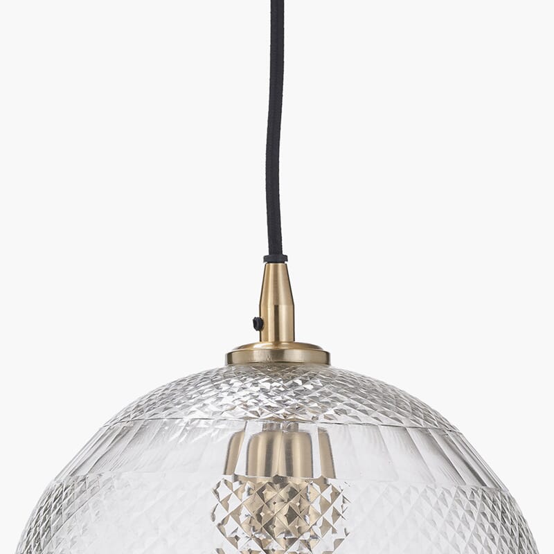 Gi hjemmet ditt et friskt uttrykk med Giselle Pendellampe. Den har et klassisk diamantmønster i klart glass og detaljer i antikk messing, og passer perfekt til både moderne og tidløse interiører.