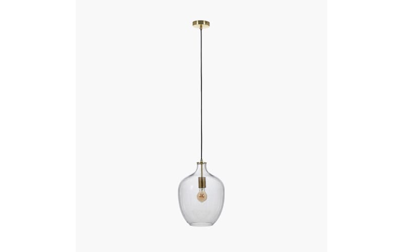 Takpendel i klart glass med bobler i glasset. Detaljer i børstet messing.