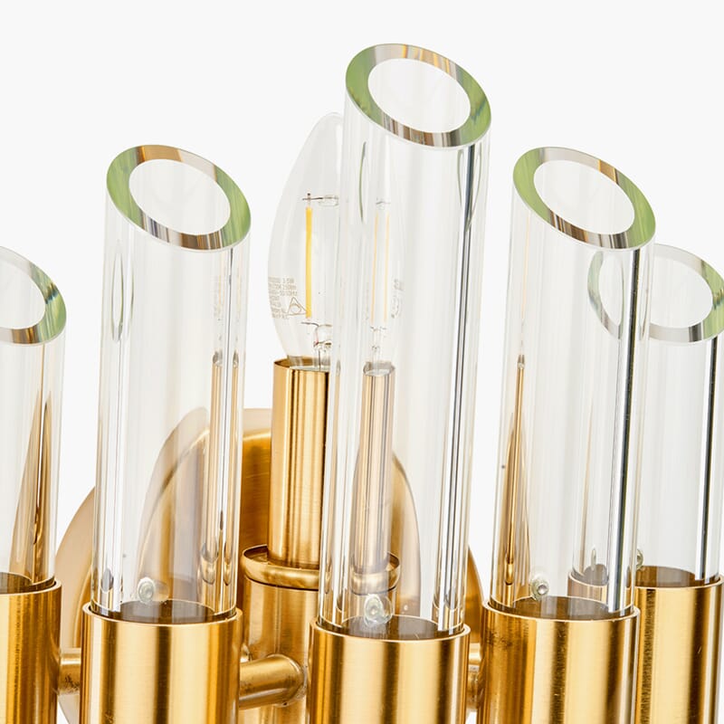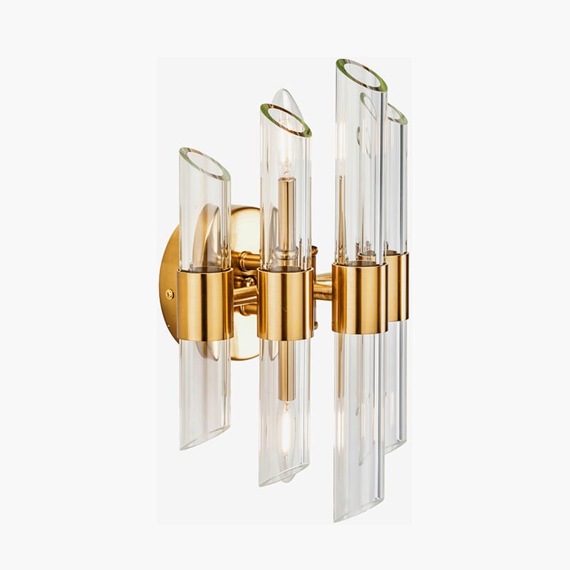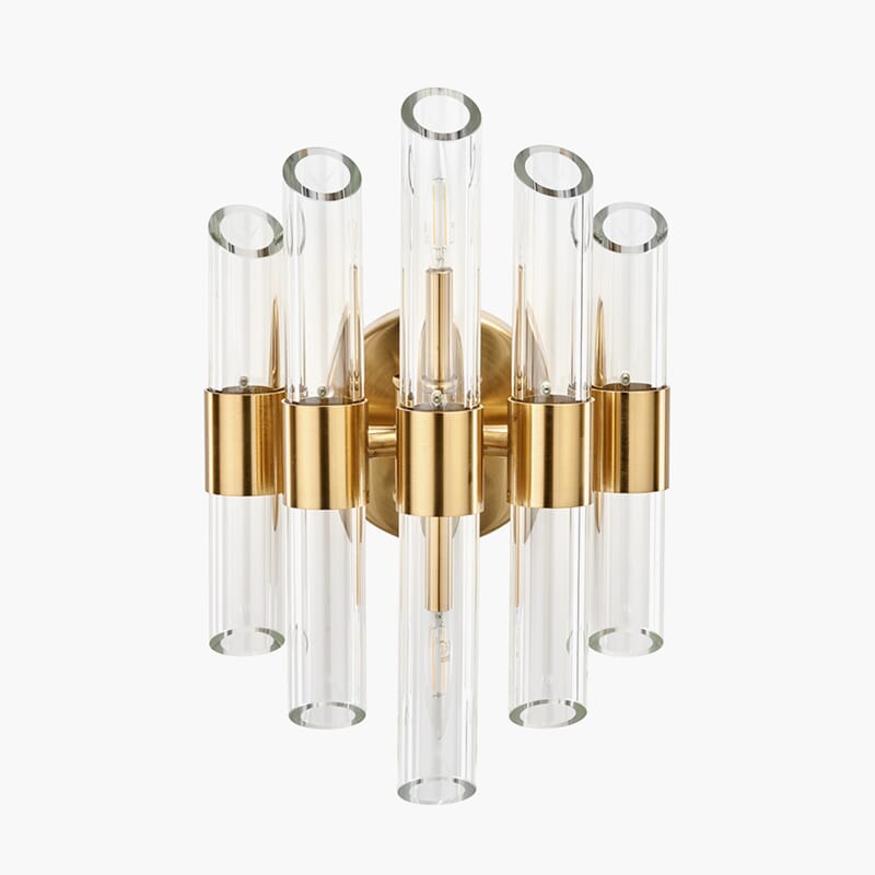 Opplev moderne luksus med Brielle Clear Glass og Antique Brass vegglampe. Den elegante antikk messing-finishen og de klare glassrørene gir et sofistikert og iøynefallende uttrykk som hever ethvert rom.