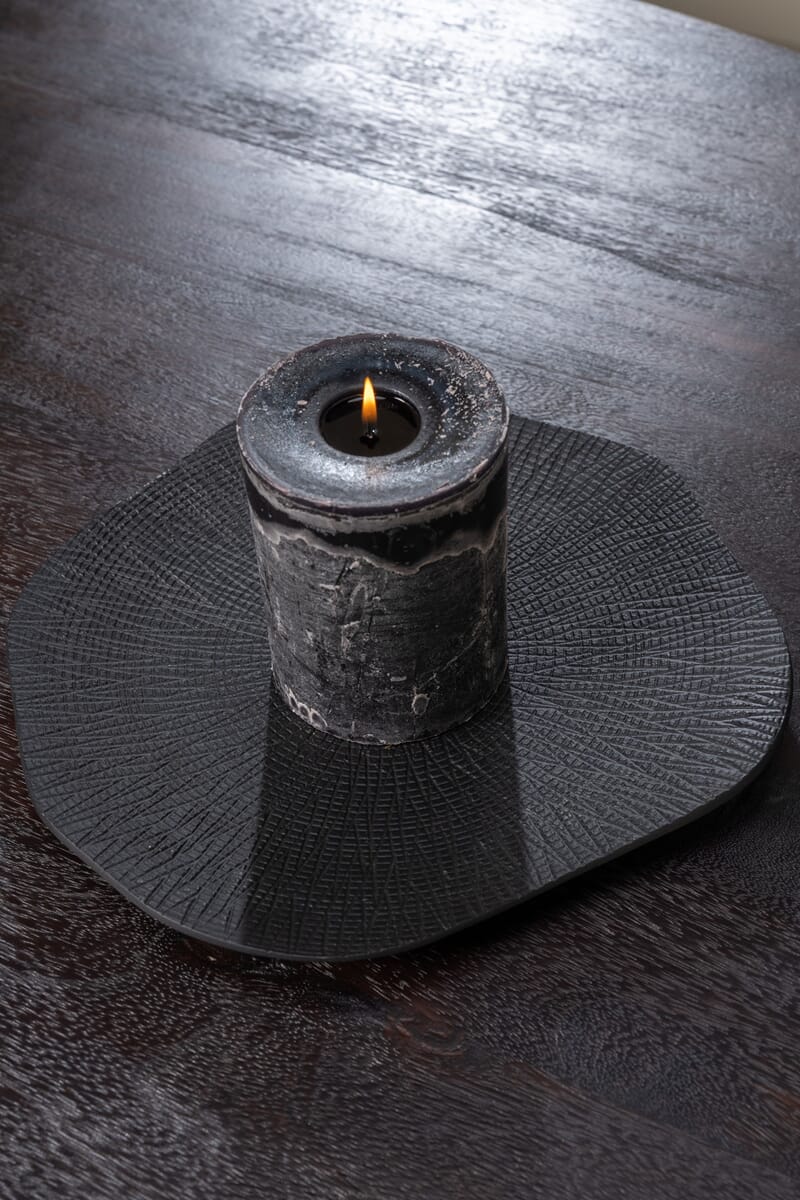 Fat i massiv aluminium med struktur i overflaten som gir et vakkert uttrykk.