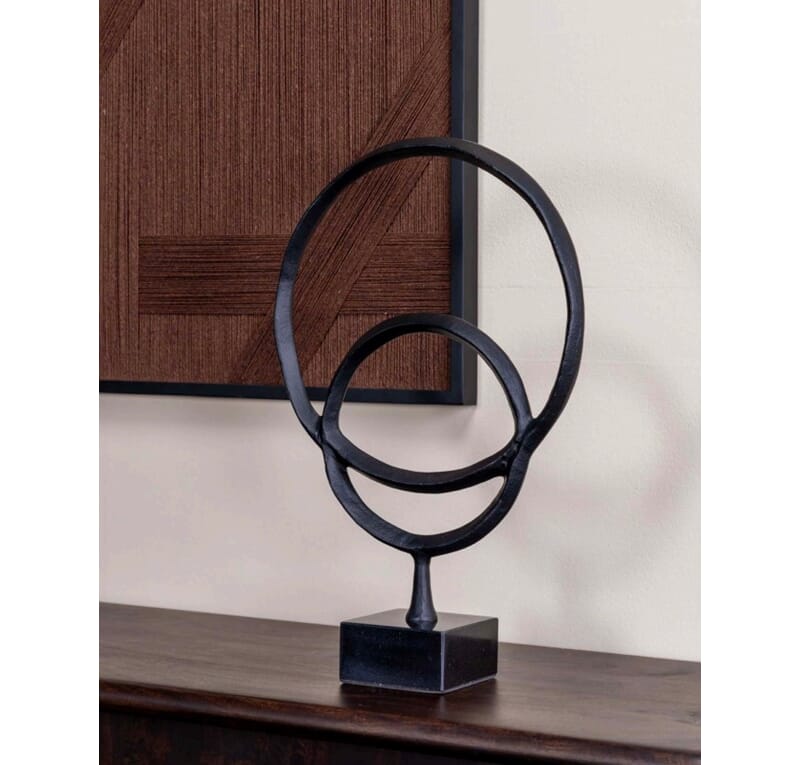 Skultpur i sortlakkert aluminium med fot i sort marmor.