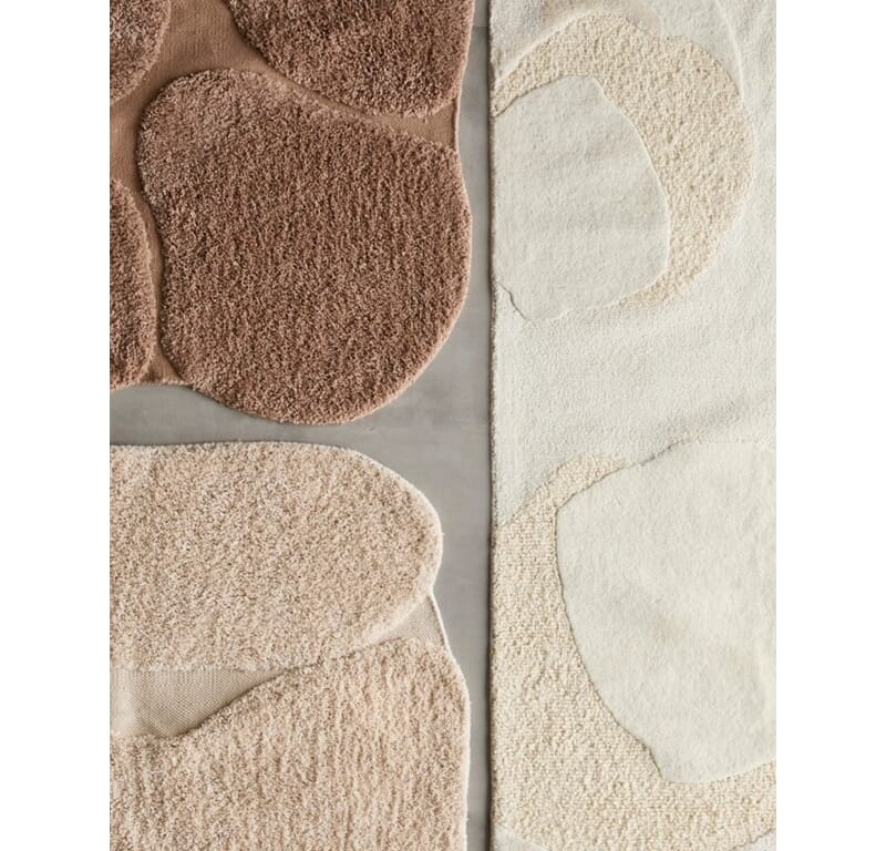 Håndvevd gulvteppe i 75 % bomull og 25% polyester. Mykt og godt med duse kontraster.