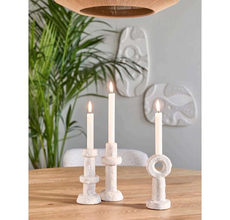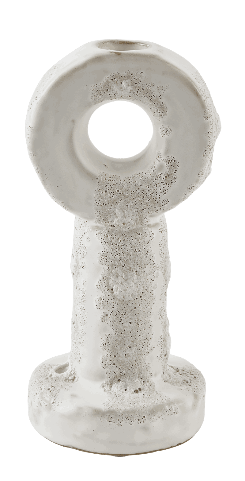 Lysestake i kjeramikk med antydning av perlemor i finish. Nydelig effekt som gjør den både dempet og posh i samme drakt.
