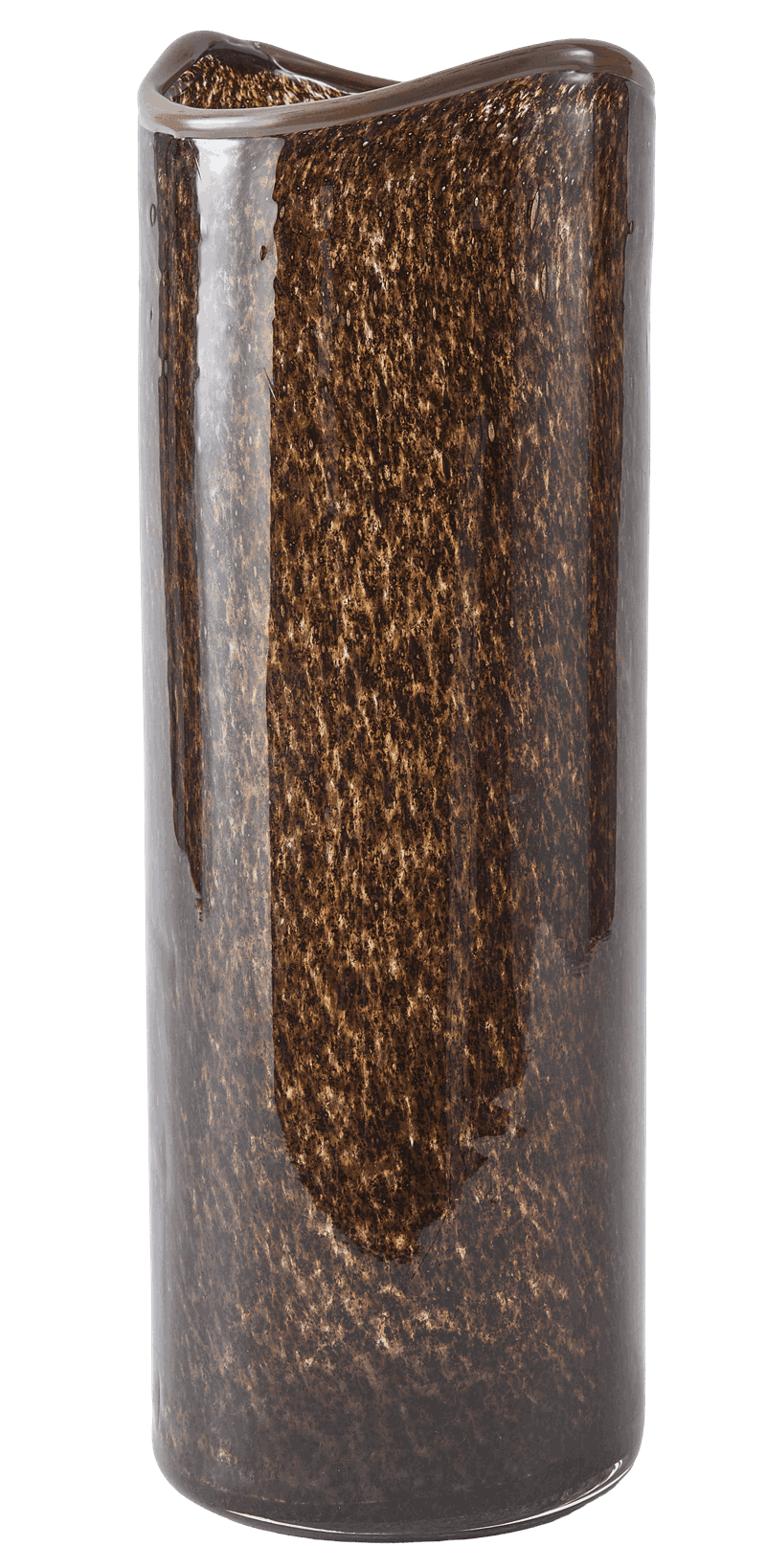 Høyreist vase med assymetrisk kant i gjennomfarget glass.