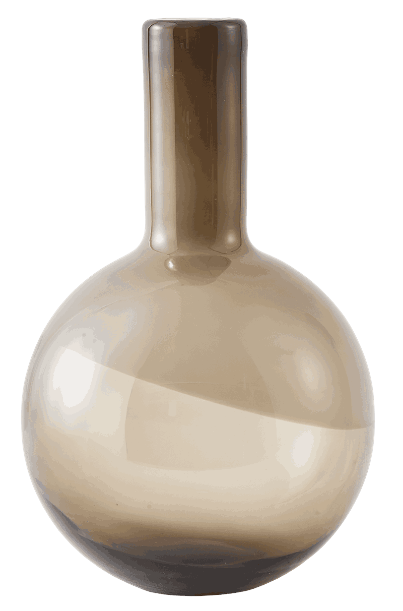 Flaskevase i gjennomfarget glass - nydelig brun farge med sjattering fra midten i frostet utførelse. En diskret, men effektfull kontrast.