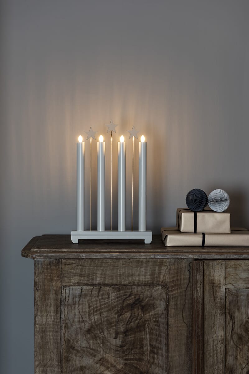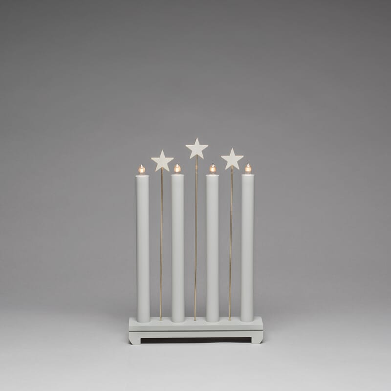 Candlestick wood 4 bulbs, grey, w.brass deco.stars 230V |