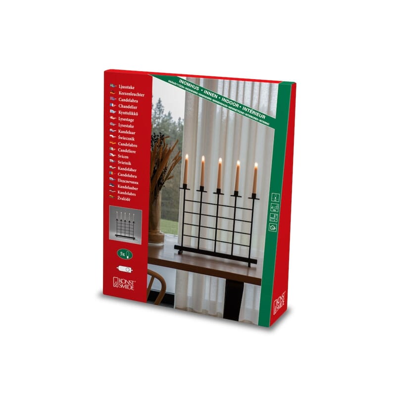 Candlestick metal, black, 5 bulbs, on/off switch IP20 |