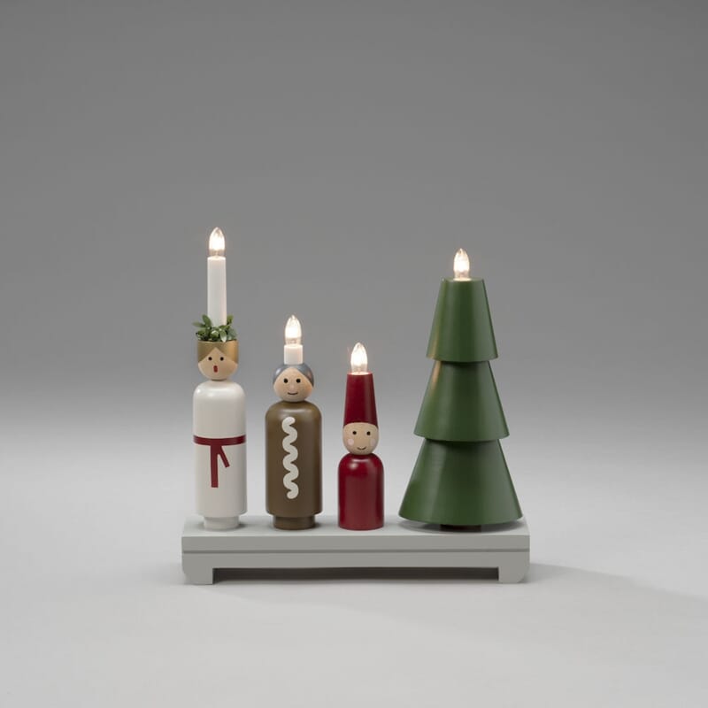 Candlestick wood 4 bulbs, multi colored, "Lucia" 230V