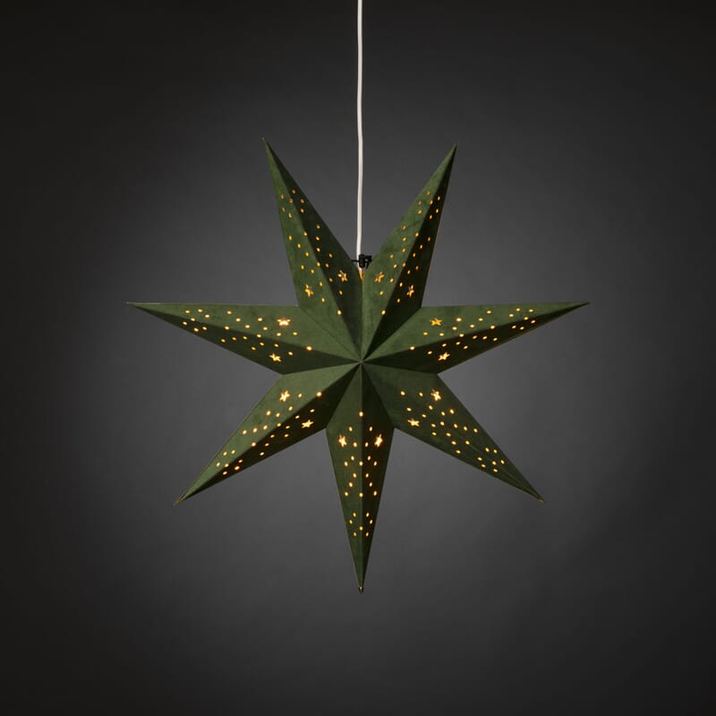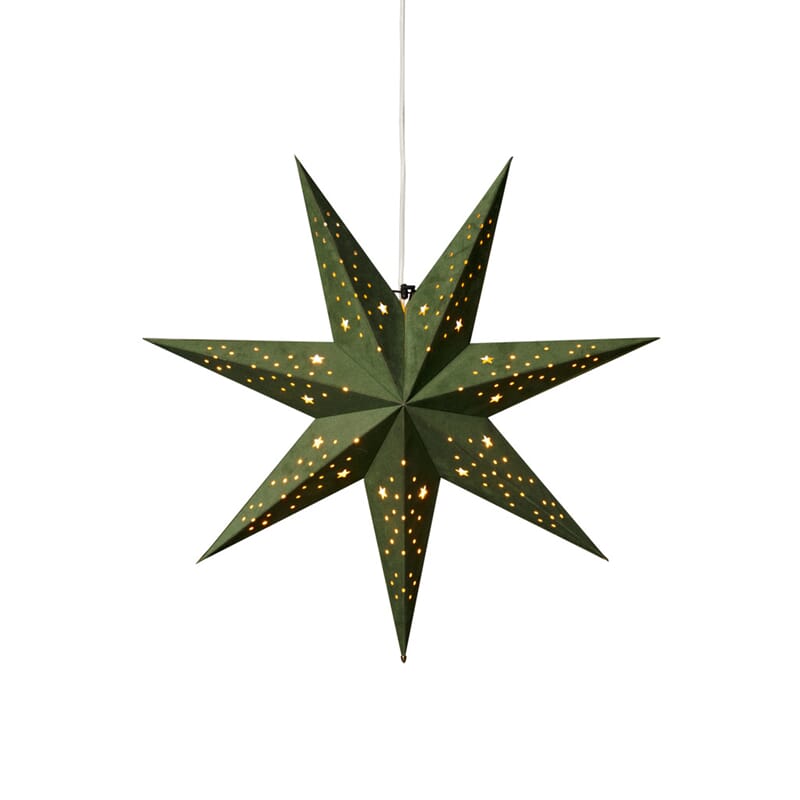Paper star green velvet 60 cm, 7P, hanging w. cord set 230V |