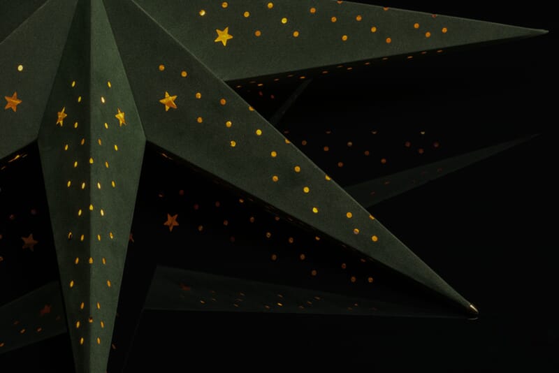 Pappstjerne 60 cm grønn fløyel med gull innside. 7 armet. Inkludert oppheng. E14 lampeholder. Hvit kabel.