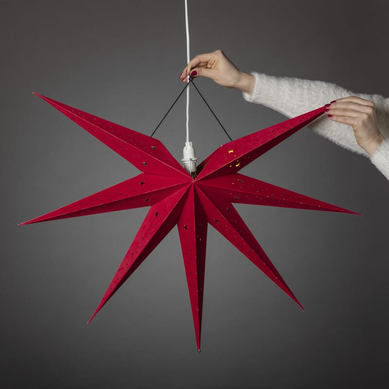 Paper star red velvet 78 cm, 7P, hanging with cord set 230V |