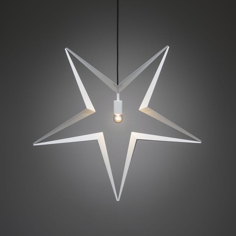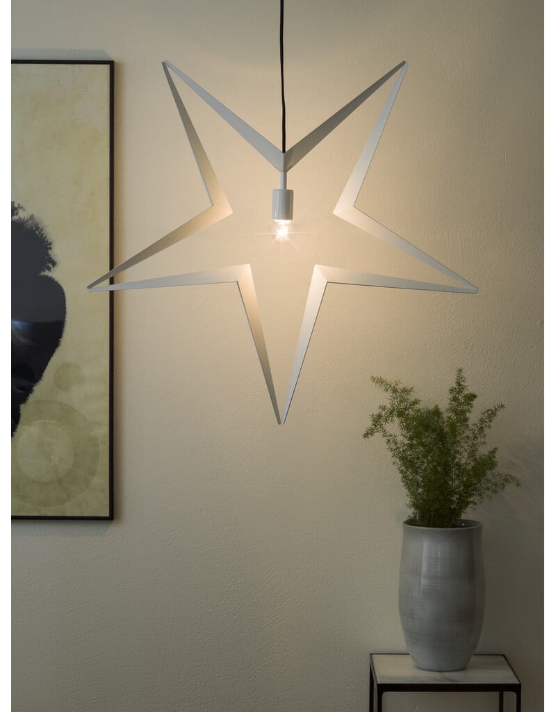 Hanging metal star, 80cm, white, black textile wire. 230V