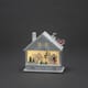 Siluett motiv med hus, snømann ig julenisse. Varmhvite LED. Timer - 6 timer.
