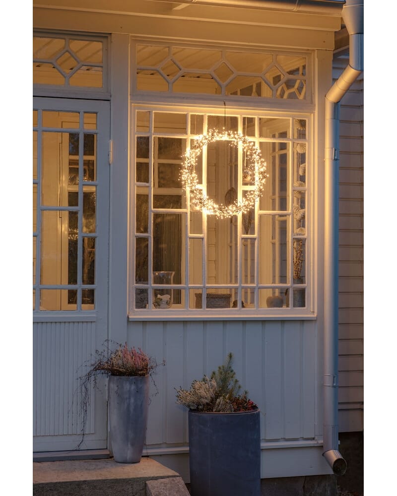 Krans 50 cm med 600 dimmbare LED. Sort kabel og sort metall. Kransen har dimmer og timer på 8 timer.