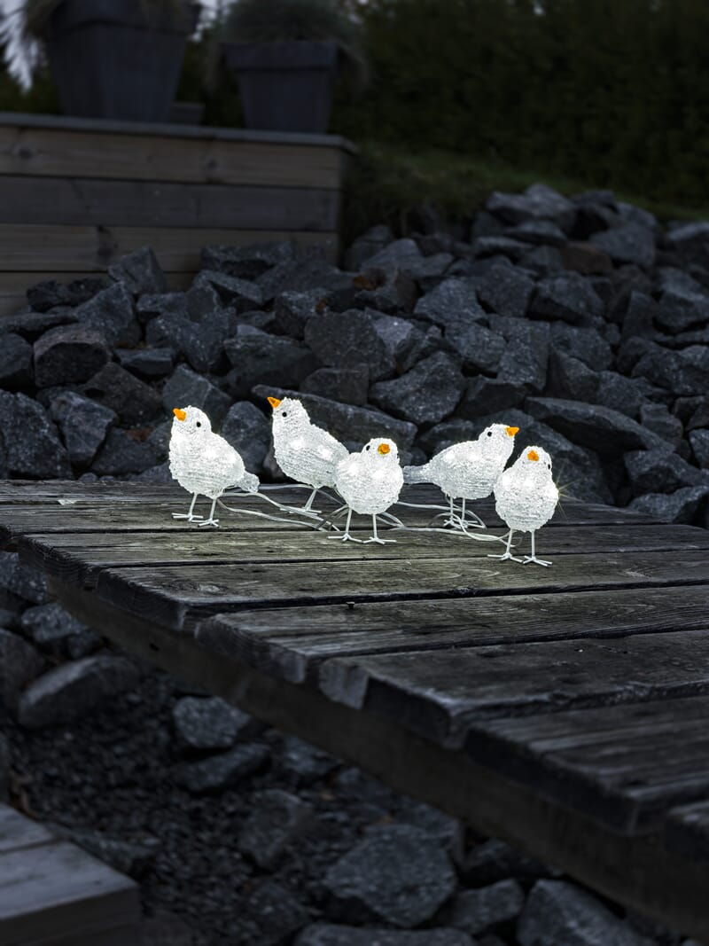Acrylic baby birds 5pcs/set, 40 white LED, IP44 trafo |