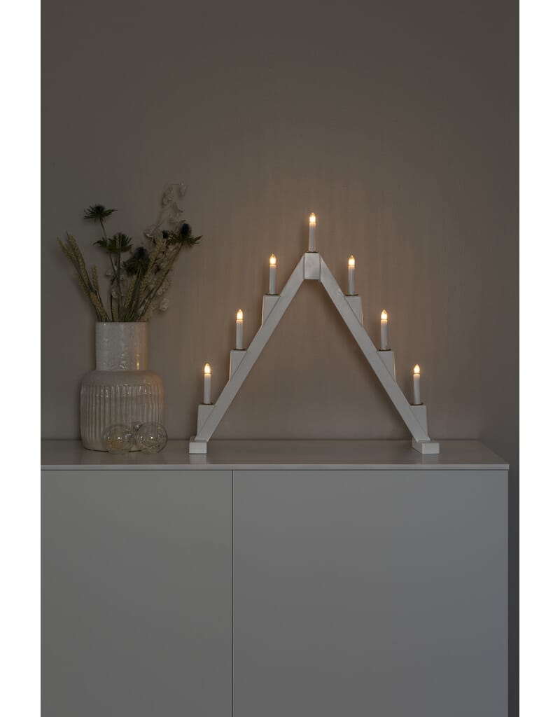 Adventstake 7 armet treverk - hvitlakkert.