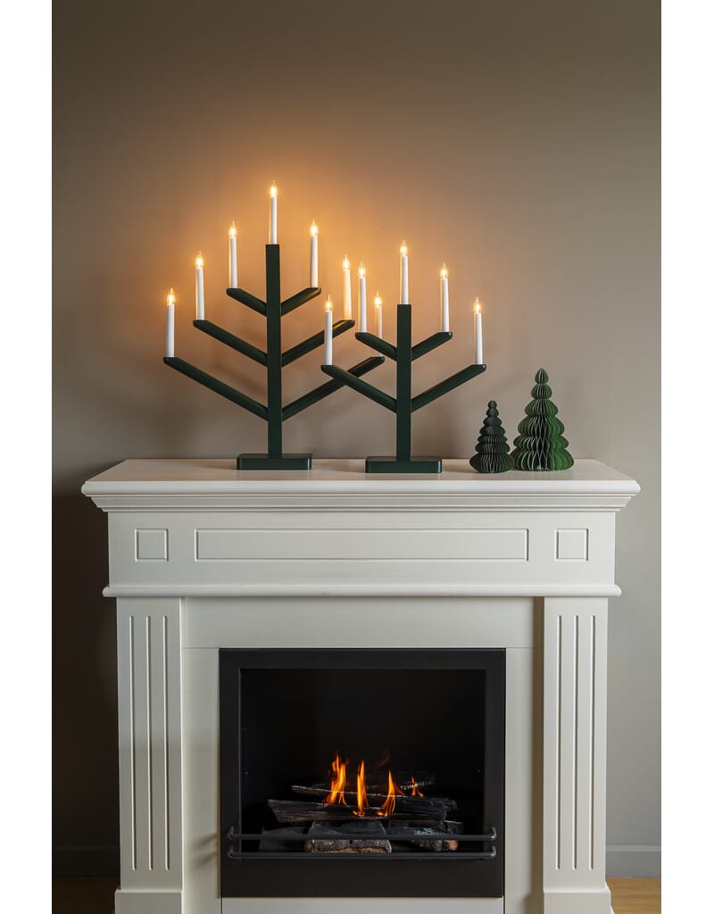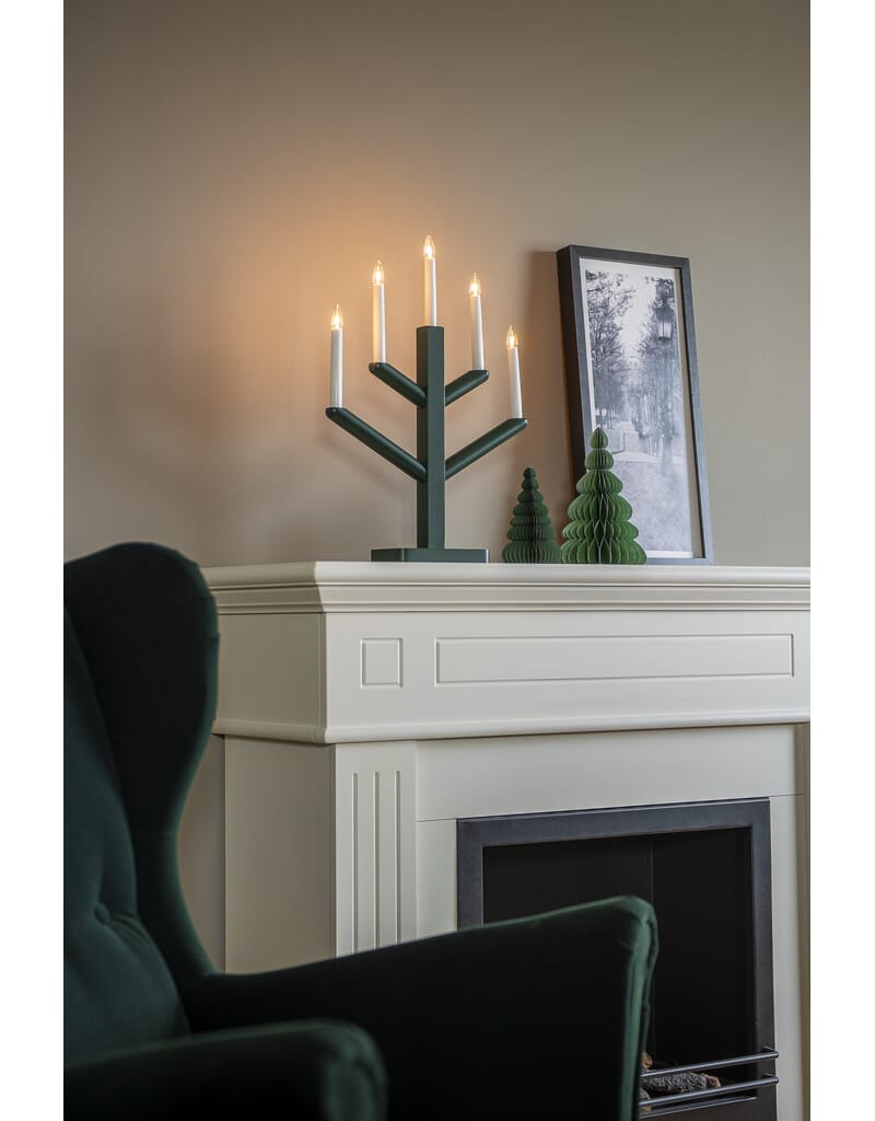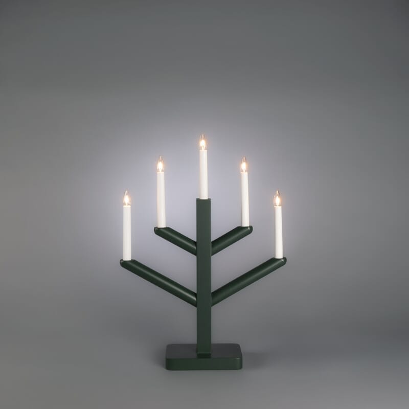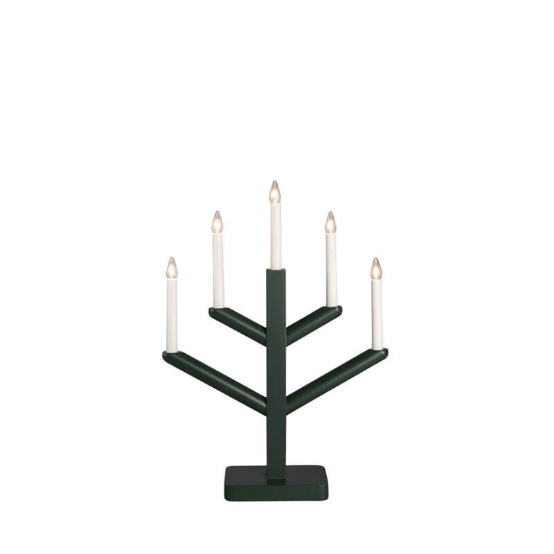 Adventstake 5 armet treverk - mørk grønnlakkert.