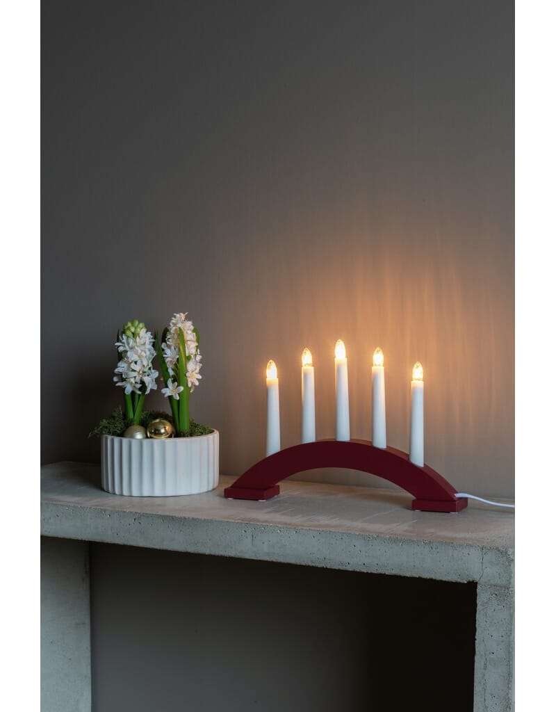 Adventstake i treverk - rødlakkert. Ledning med bryter.