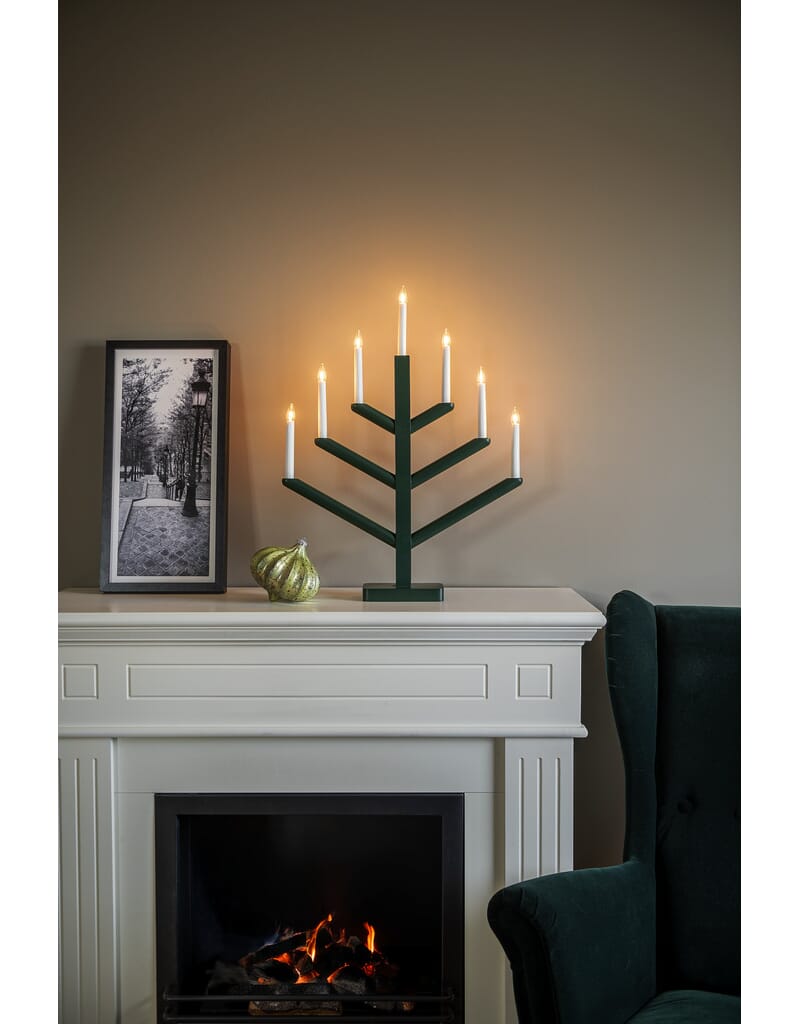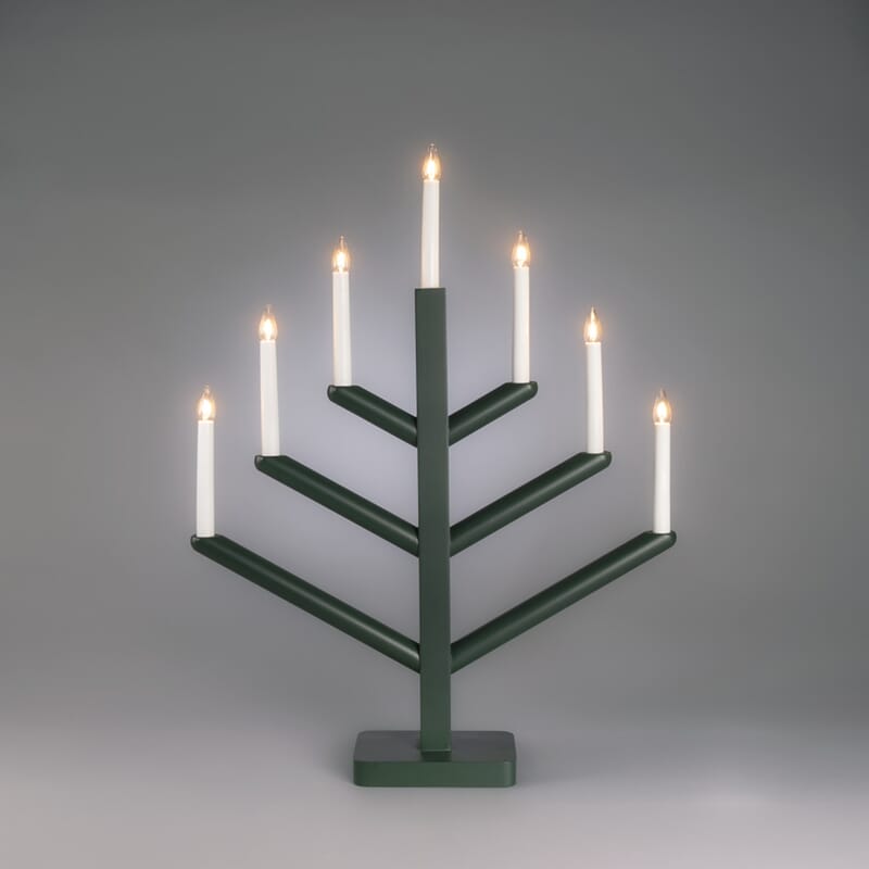 Adventstake 7 armet treverk - mørk grønnlakkert.