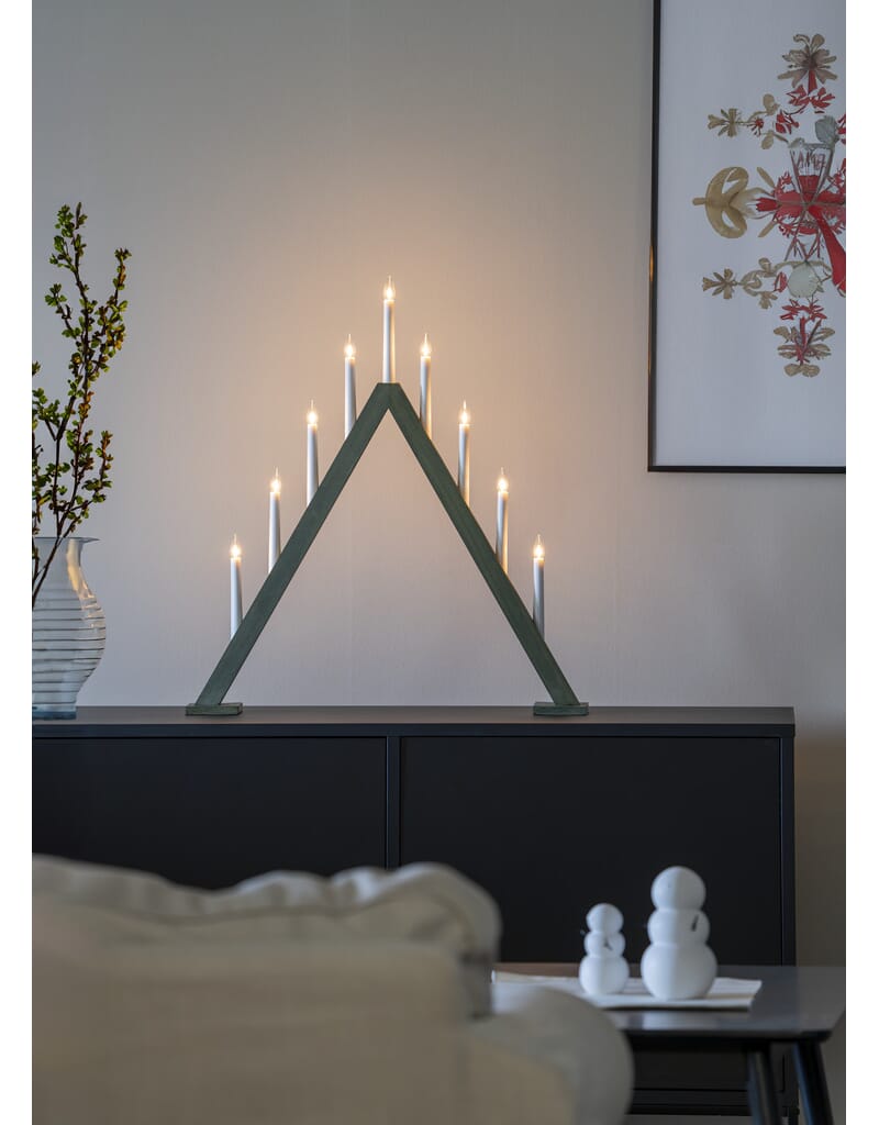 Adventstake 9 armet treverk - grønnbeiset.