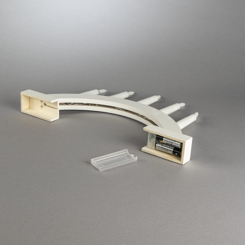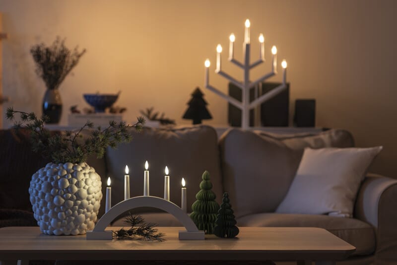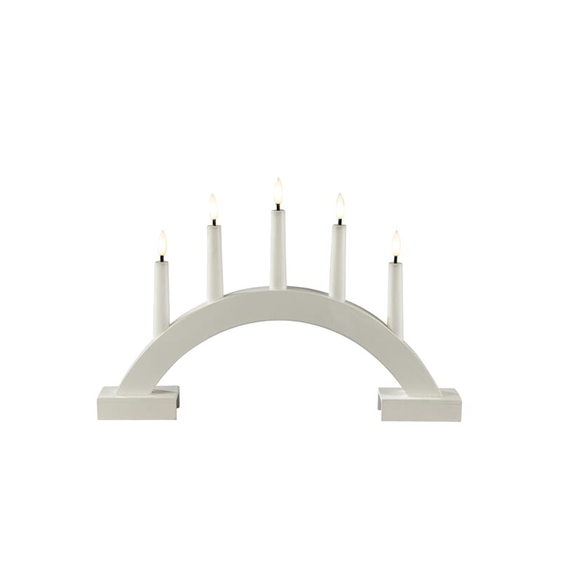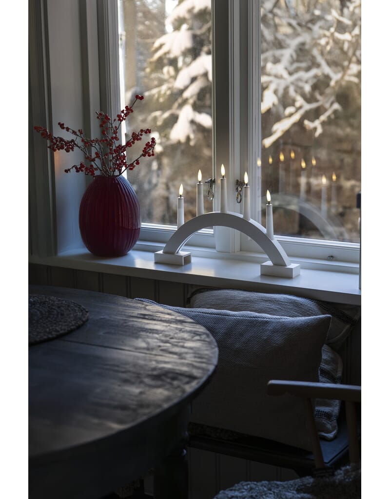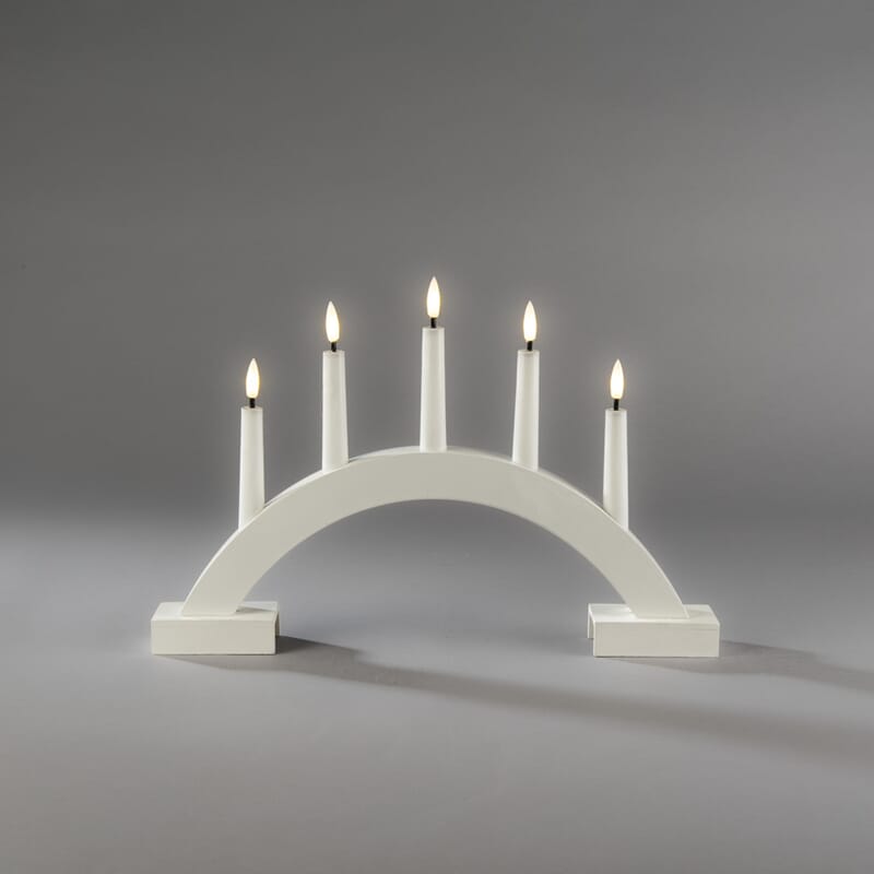 Adventstake i matt hvitlakkert treverk med varmhvit LED, og timer, 6 timer.