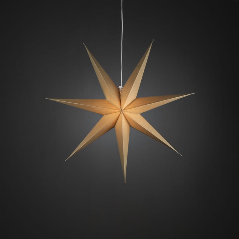 Adventstjerne i papp med små perforeringer. Beige.