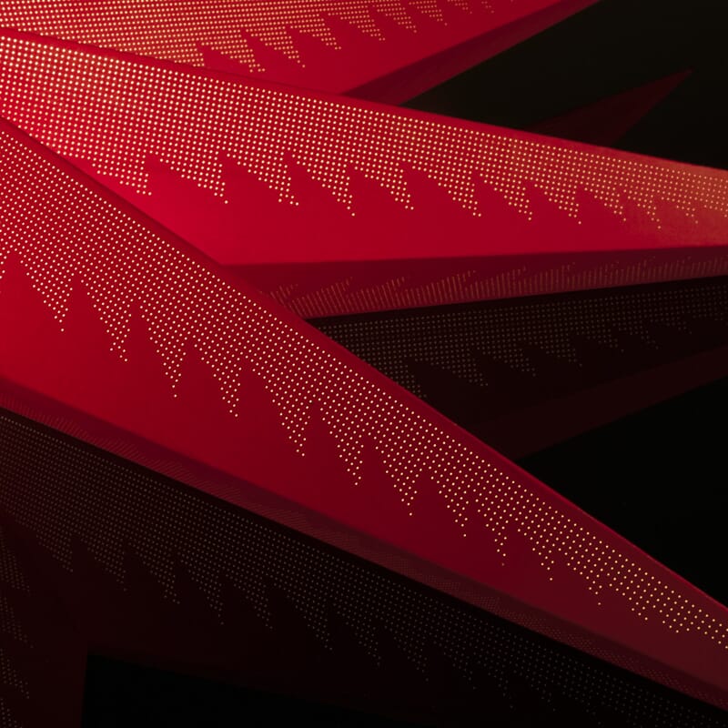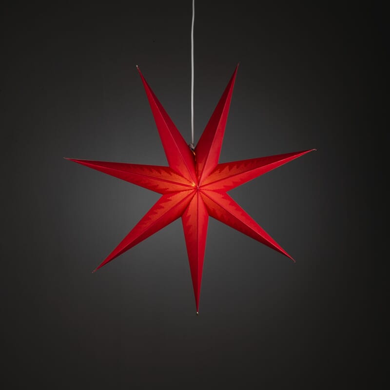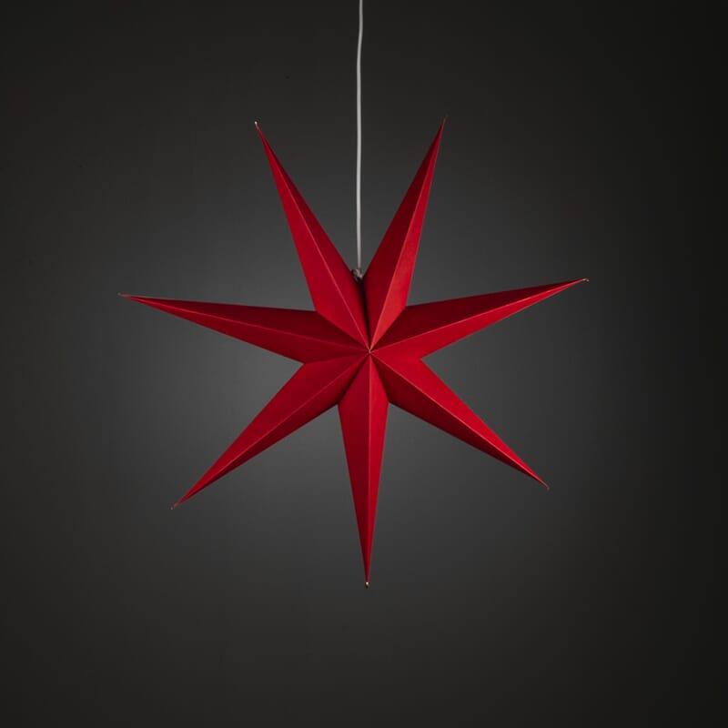 Adventstjerne i papp med små perforeringer. Rød.