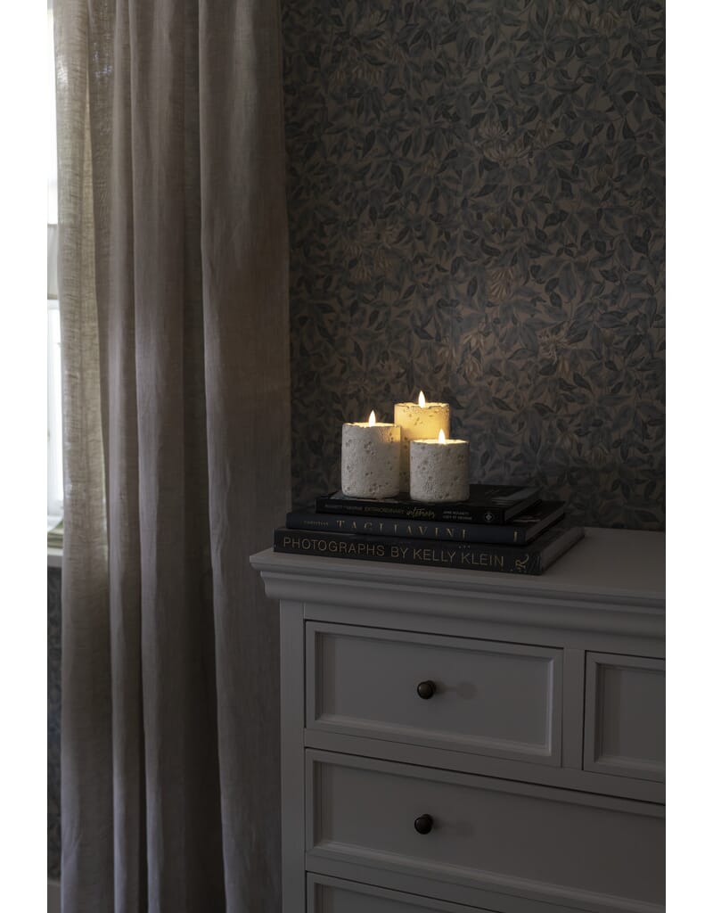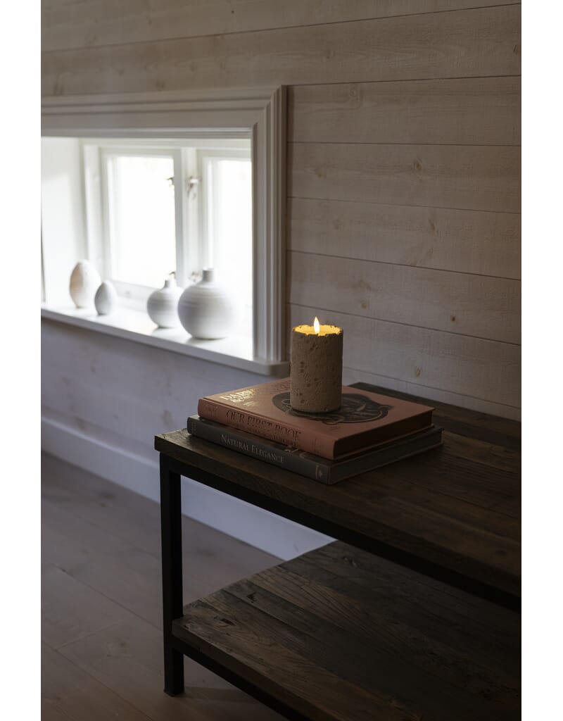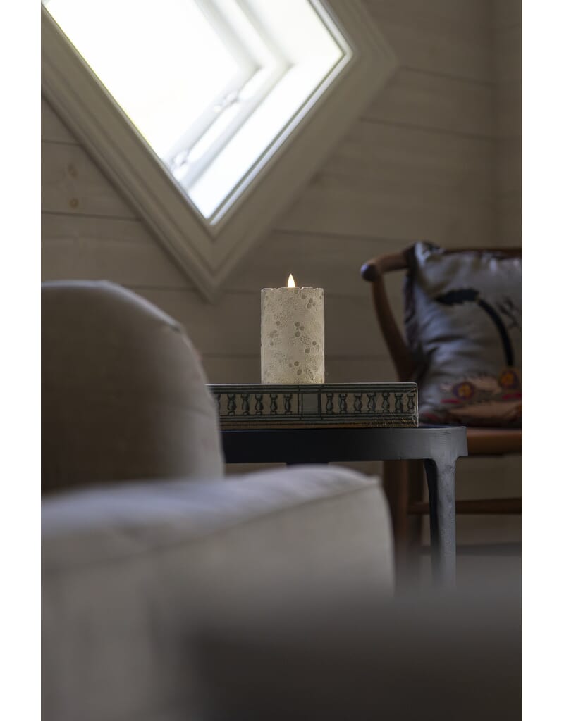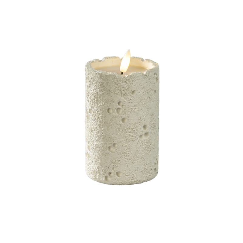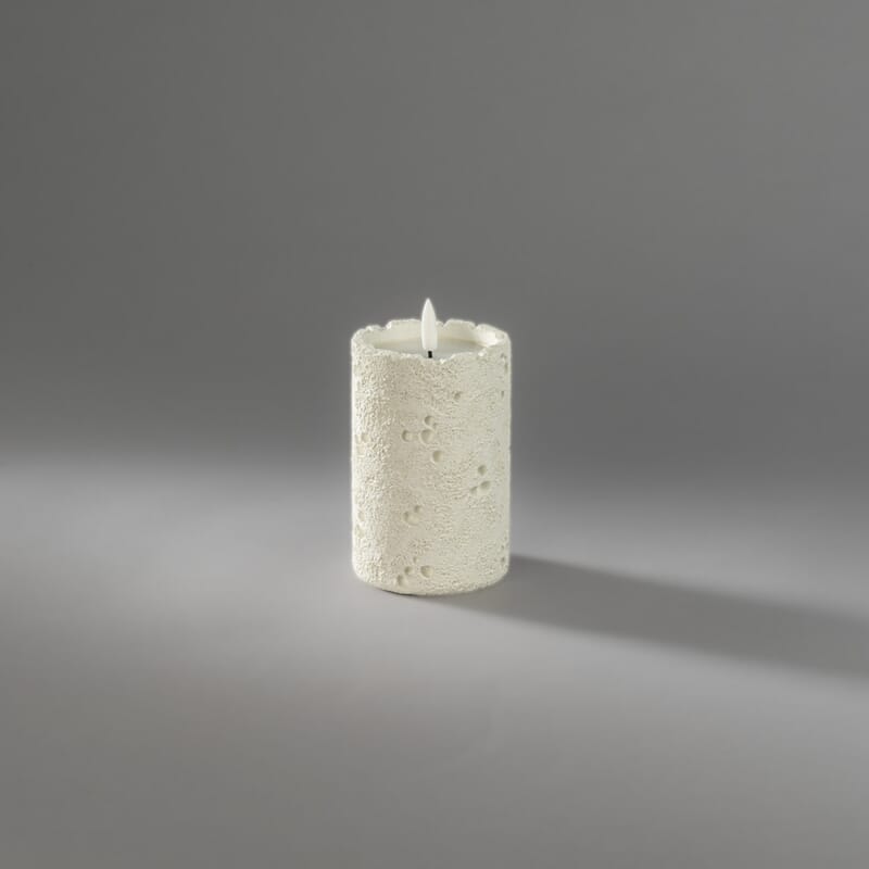 Hvitt cementlys med varmhvit LED.