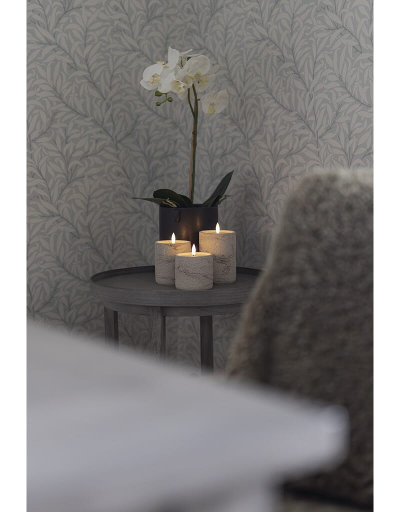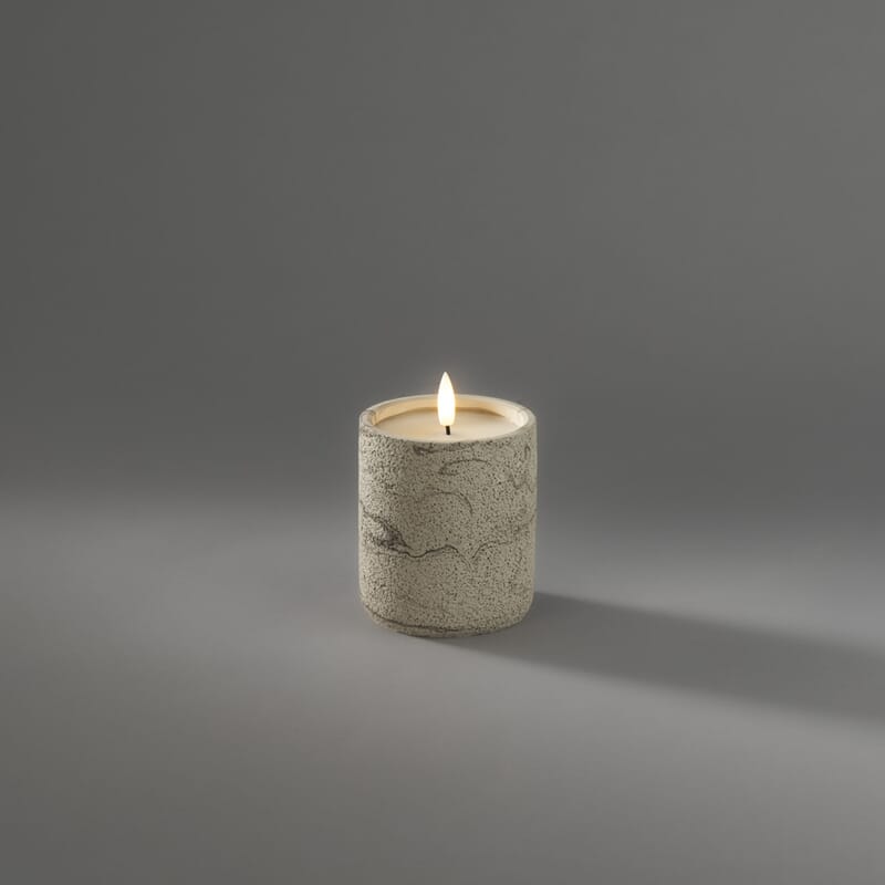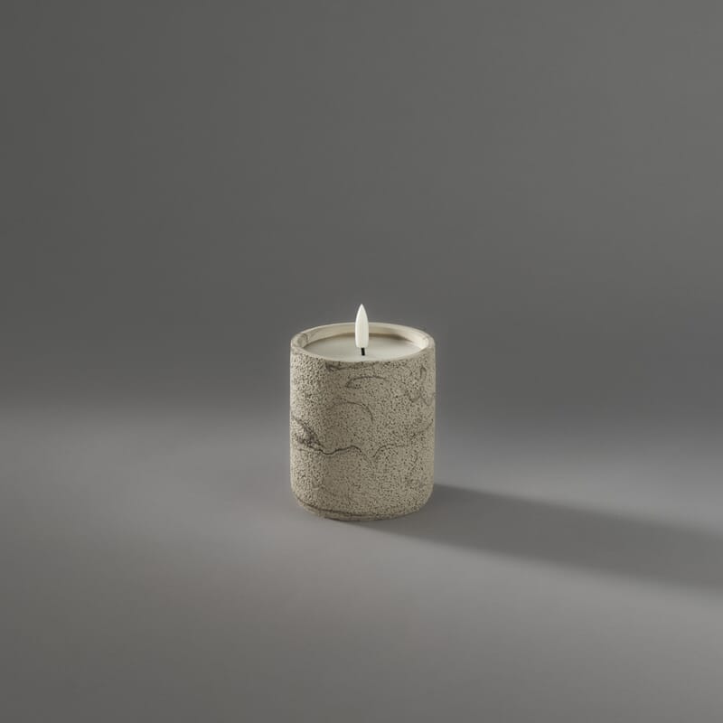 Beige cementlys med varmhvite LED. Timer, 6 timer.