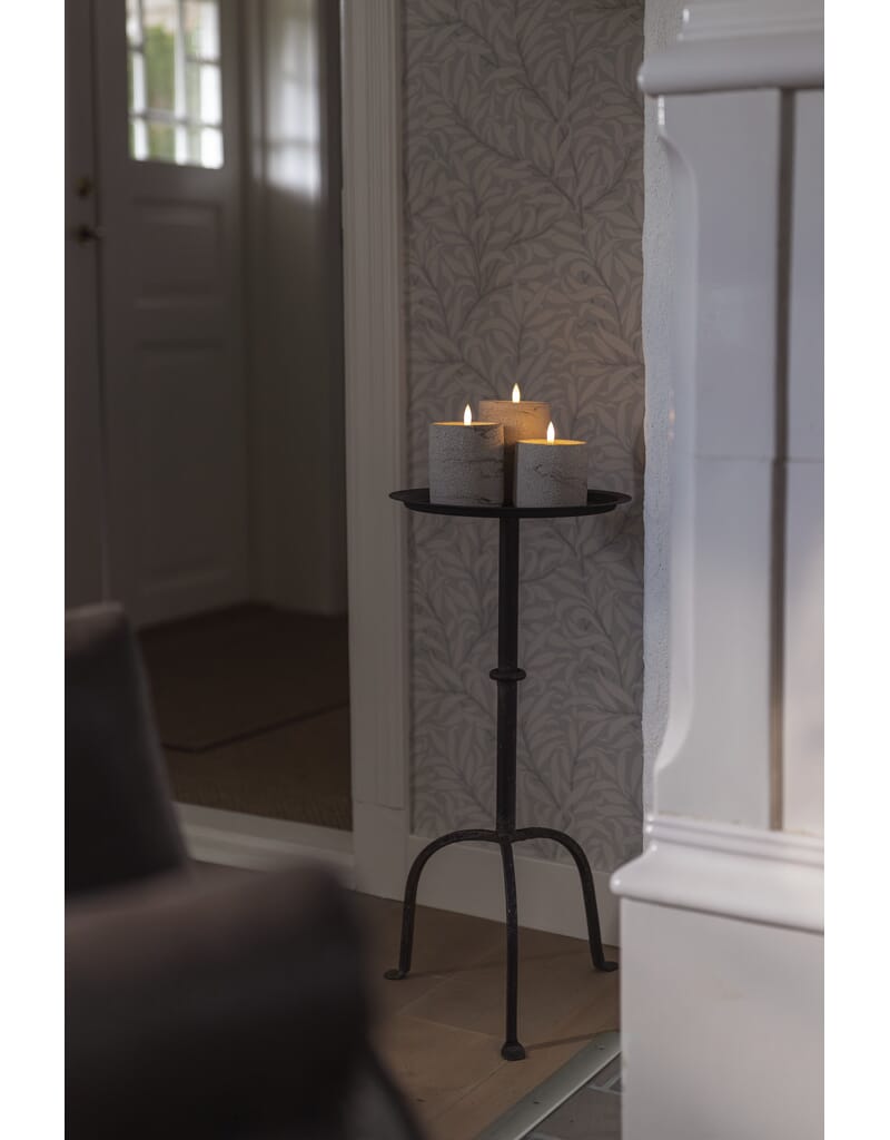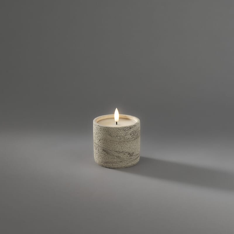 Beige cementlys med varmhvite LED. Timer, 6 timer.
