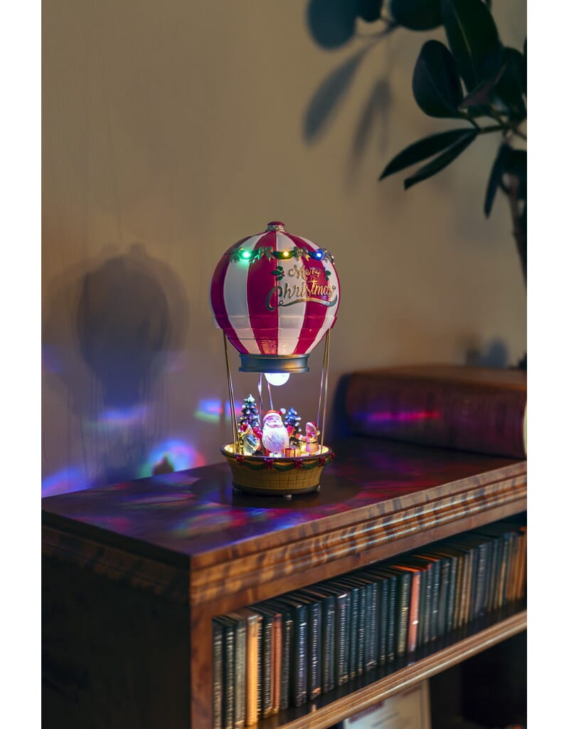 Luftballong med julenisse og fargede LED. Timer, 6 timer. USB-kabel 1,8 m.