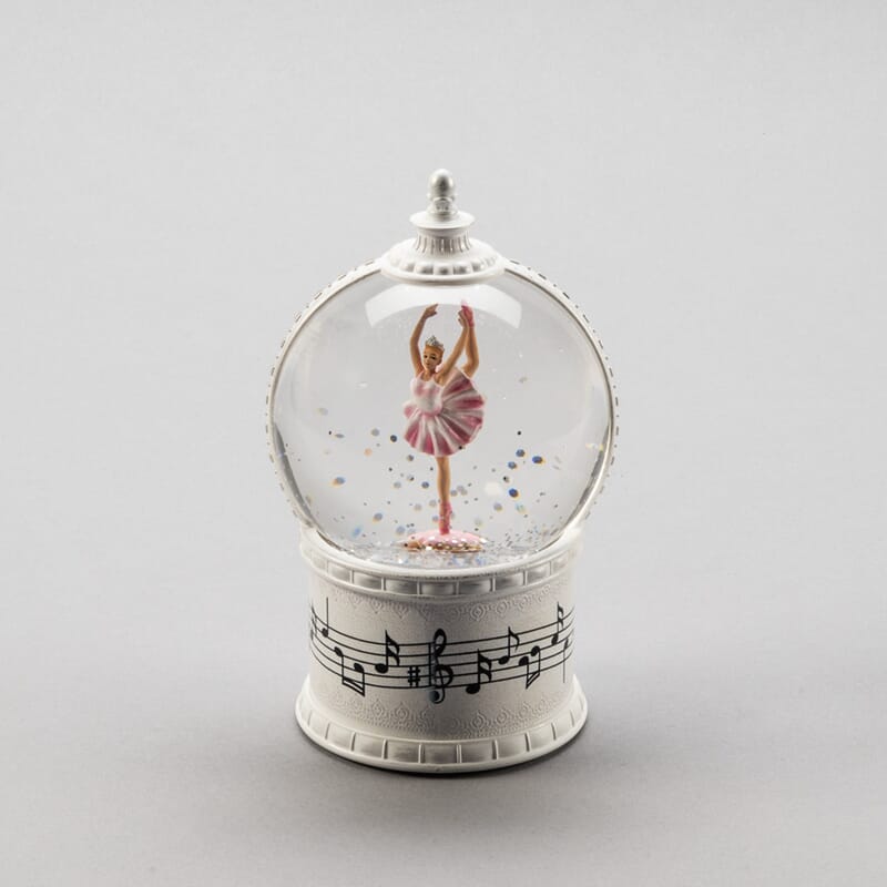 Vannfyllt lykt med ballerina, musikk og roterende funksjon. Varmhvit LED og timer - 5 timer.