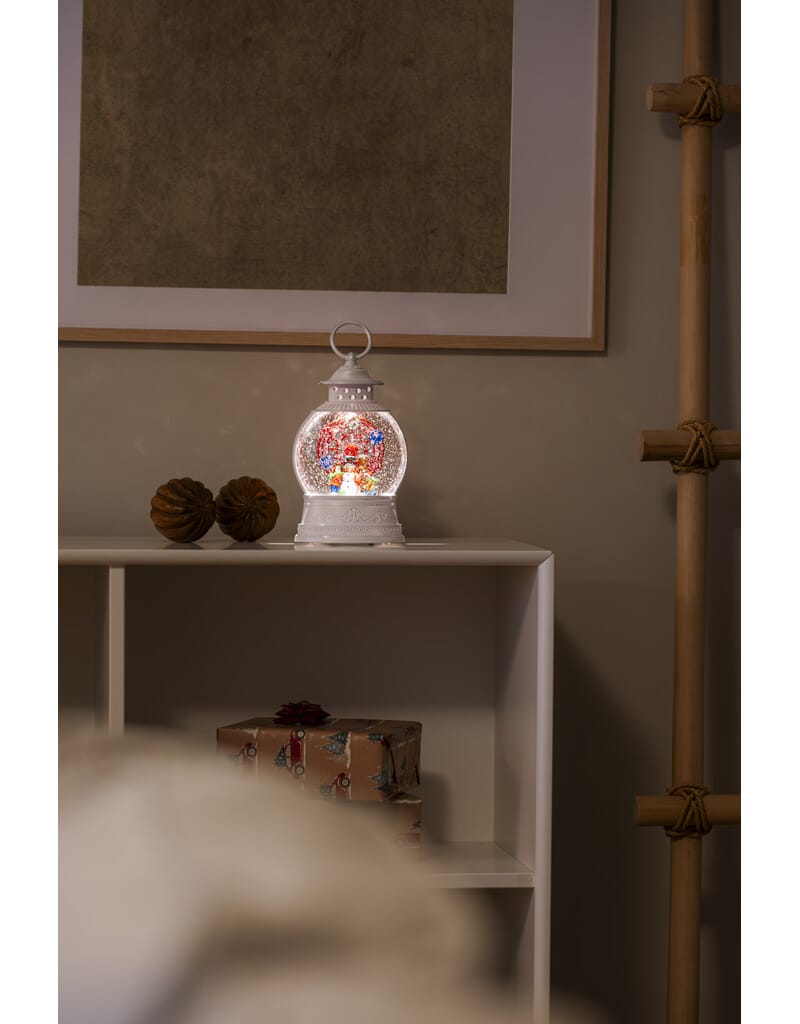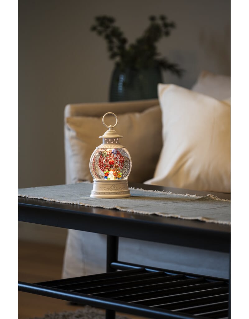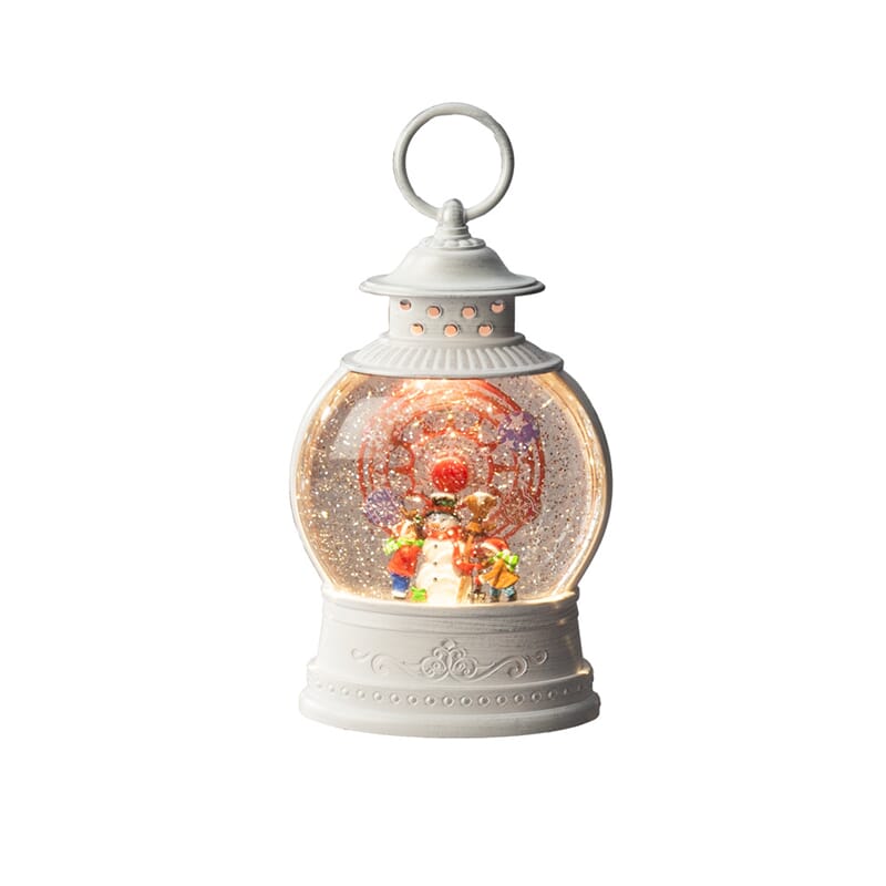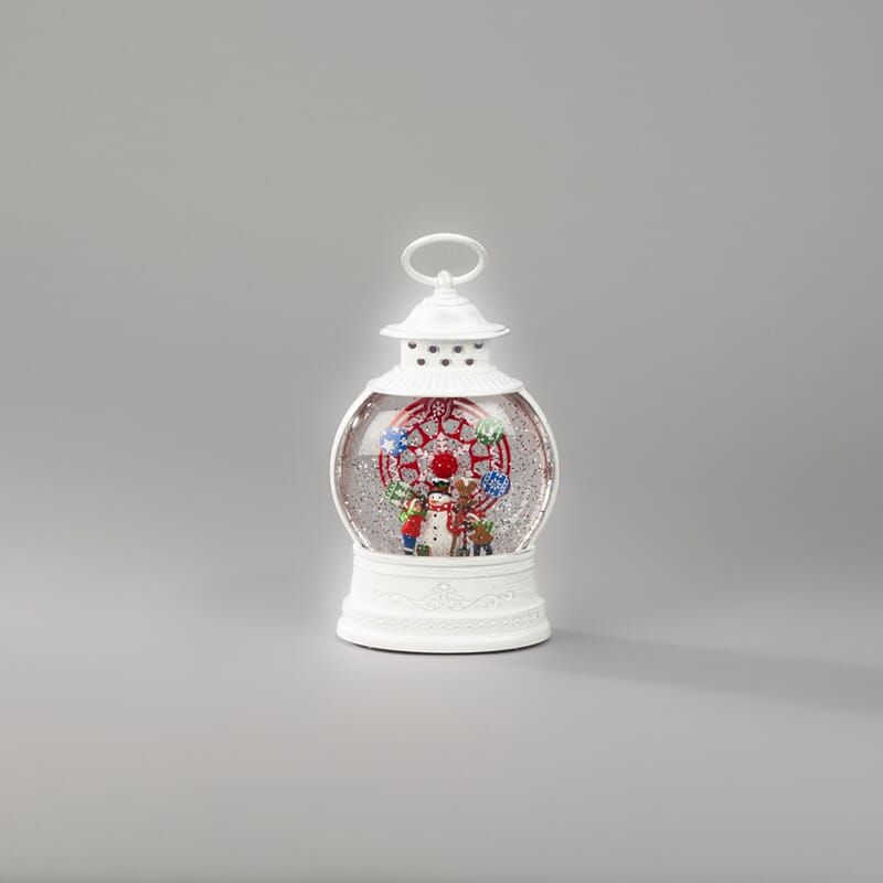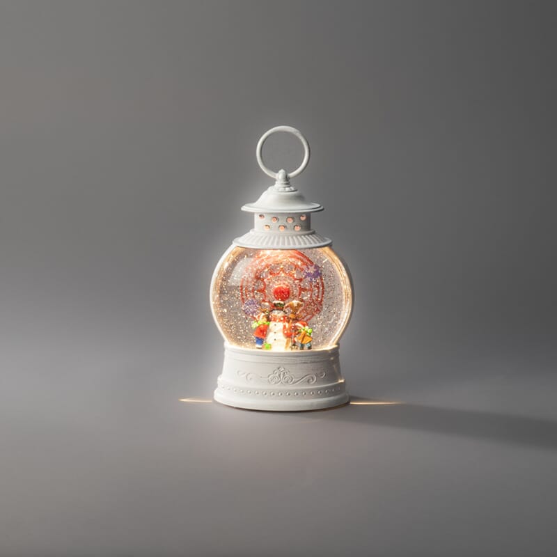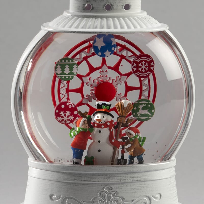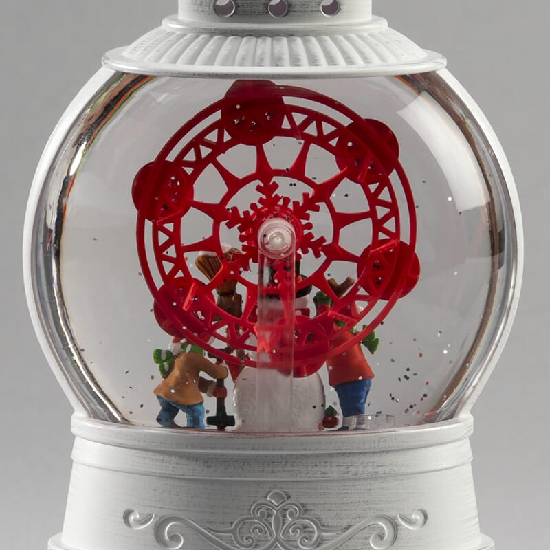 Vannfyllt lykt med pariserhjul, snømann med roterende funksjon. Varmhvit LED og timer, 5 timer.