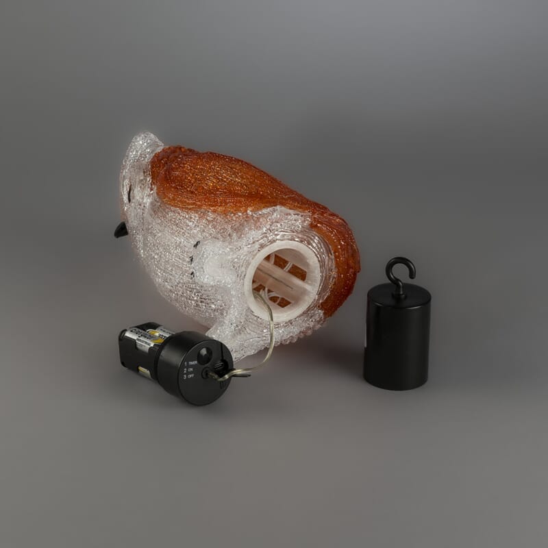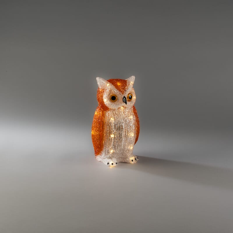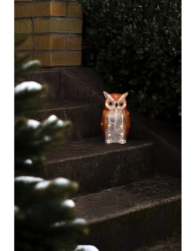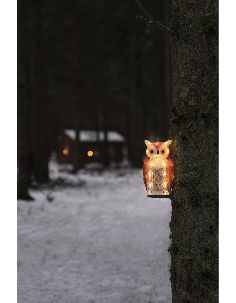 Ugle med varmhvite LED. Transparent kabel og timer, 6 timer.