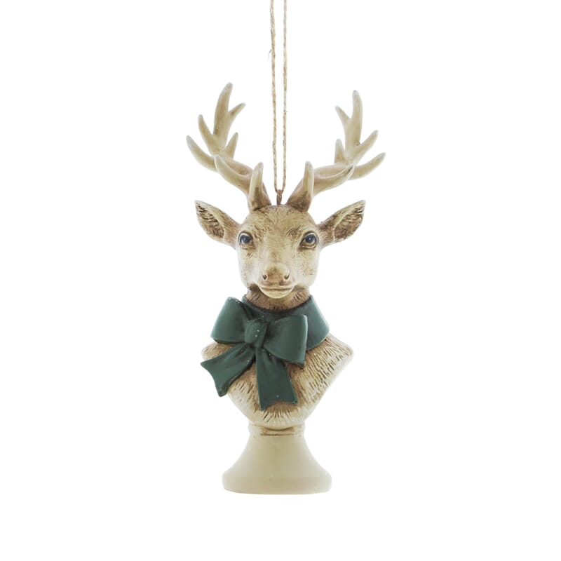 Hjort i polyresin med grønn sløyfe - 12 cm.