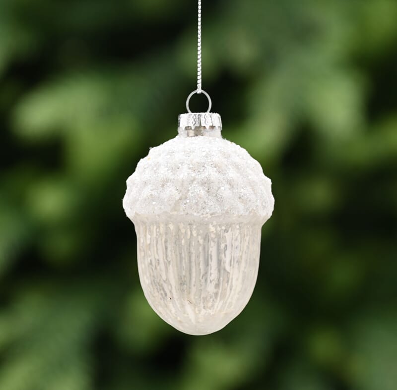 Kongle matt hvitt glass med perledekor - 8 cm.