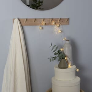 Slynge med 20 varmhvite LED, transparent kabel og timer, 6 timer.