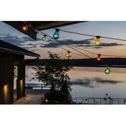 Denne modellen kan skjøtes i opp til 4 lengder etter hverandre. Du begynner med en startslynge (Artikkel 2397-500), deretter bygger du videre med denne slyngen her som er tilleggsslyngen.Slyngen har 10 fargede LED pærer i plast.