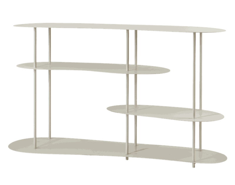 Serie bestående av reol, sidebord og tv benk (lavt sidebord) i lakkert jern.
