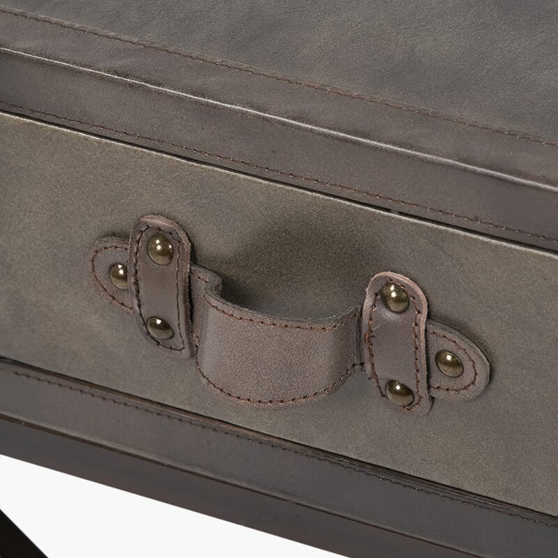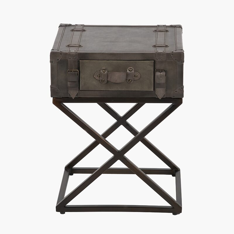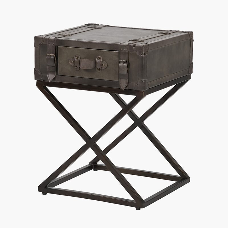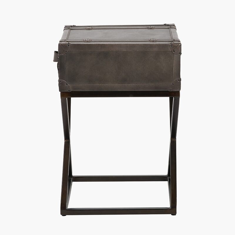 Sidebordet til godstolen på hytta. Adriano i peppercorn skinn.