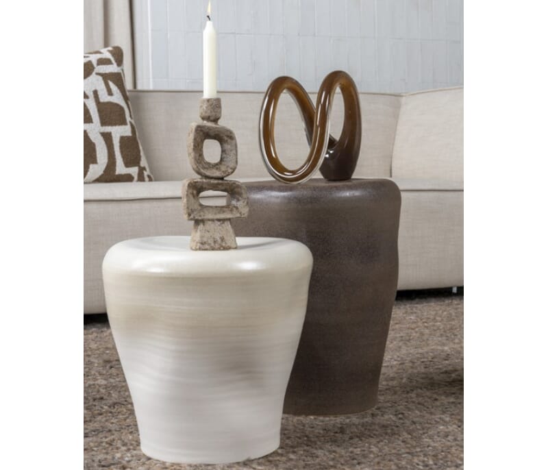 Organisk fason, matt finish - og vi lager dem i 2 farger; Ecru og Brun.